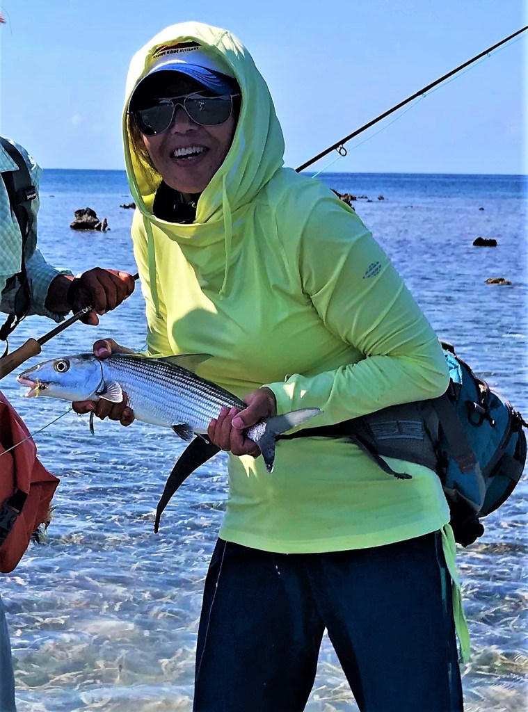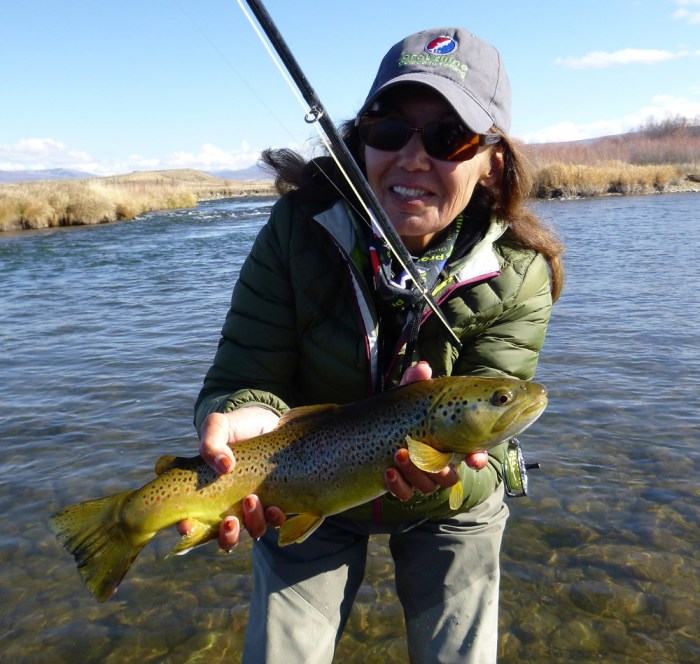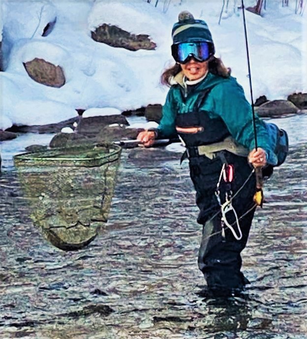 What Lani enjoys most is talking about the wonderful attributes of fly-fishing to someone’s non-fishing partner or spouse. Nearly 100% of the time, with her relaxed demeanor and personal experience, she radiates enough positivity and interest to get the person placed in her charge venturing out into the water with her.