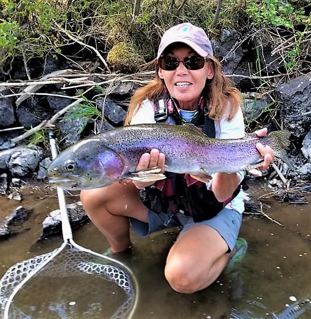Lani caught her very first trout on a small elk hair caddis in Hot Creek in the Eastern Sierra the summer of 1979. Having no earthly idea how to land the poor thing it became so entangled in weeds and fly line it’s a miracle it swam off and survived. The following year, sitting casually on a rock in the West Walker river, she caught her first sizable trout on what was then called a ‘birds’ nest” nymph. With very little experience playing a larger fish, her inappropriate 6X tippet snapped under the pressure and the fish swam away with her fly. And so, the game began.
