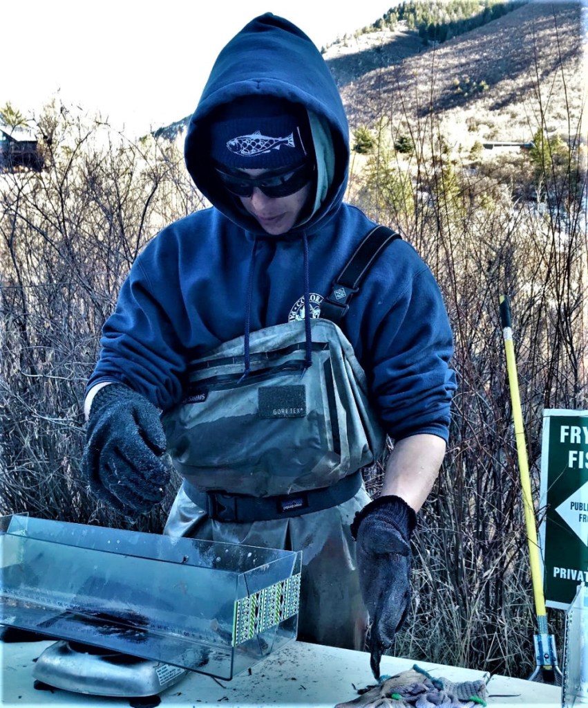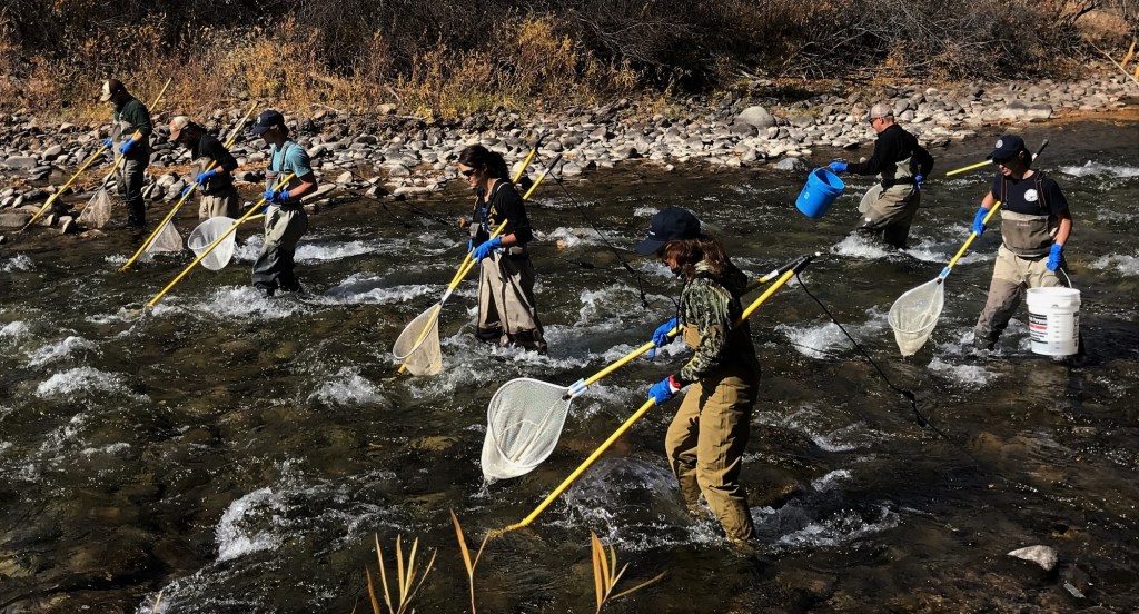 The Colorado Parks and Wildlife agency does so much to protect our fisheries, preserve the watershed and ensure the safety of our angling community (among many other things!). It’s our pleasure to volunteer an assist to the Glenwood Springs Wildlife Service Center field biologists, aquatic technicians and wildlife officers with the Fall fish count, boat ramp maintenance and, more recently, the Basalt mountain burn scar restoration. If you’ve never seen the science behind netting to cataloging and releasing fresh water sport fish, you might find the video interesting!